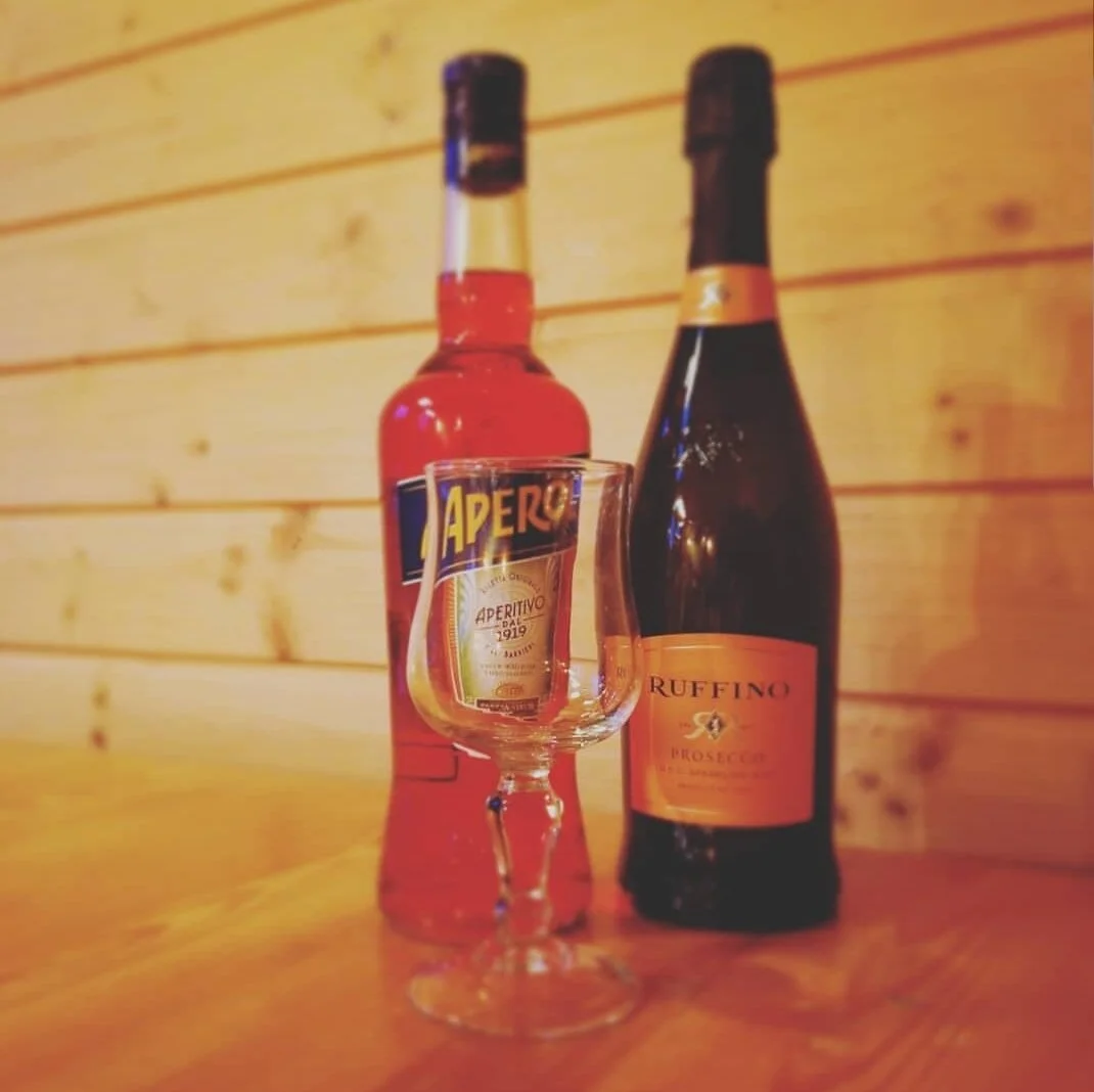 We made our version of Aperol Spritz. Just mixed about a 2oz of Aperol with Truffino Prosecco, we left out the soda.